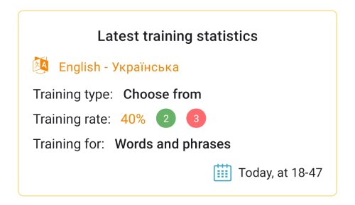 Latest training statistics: Quickly view the results of your most recent training session.
