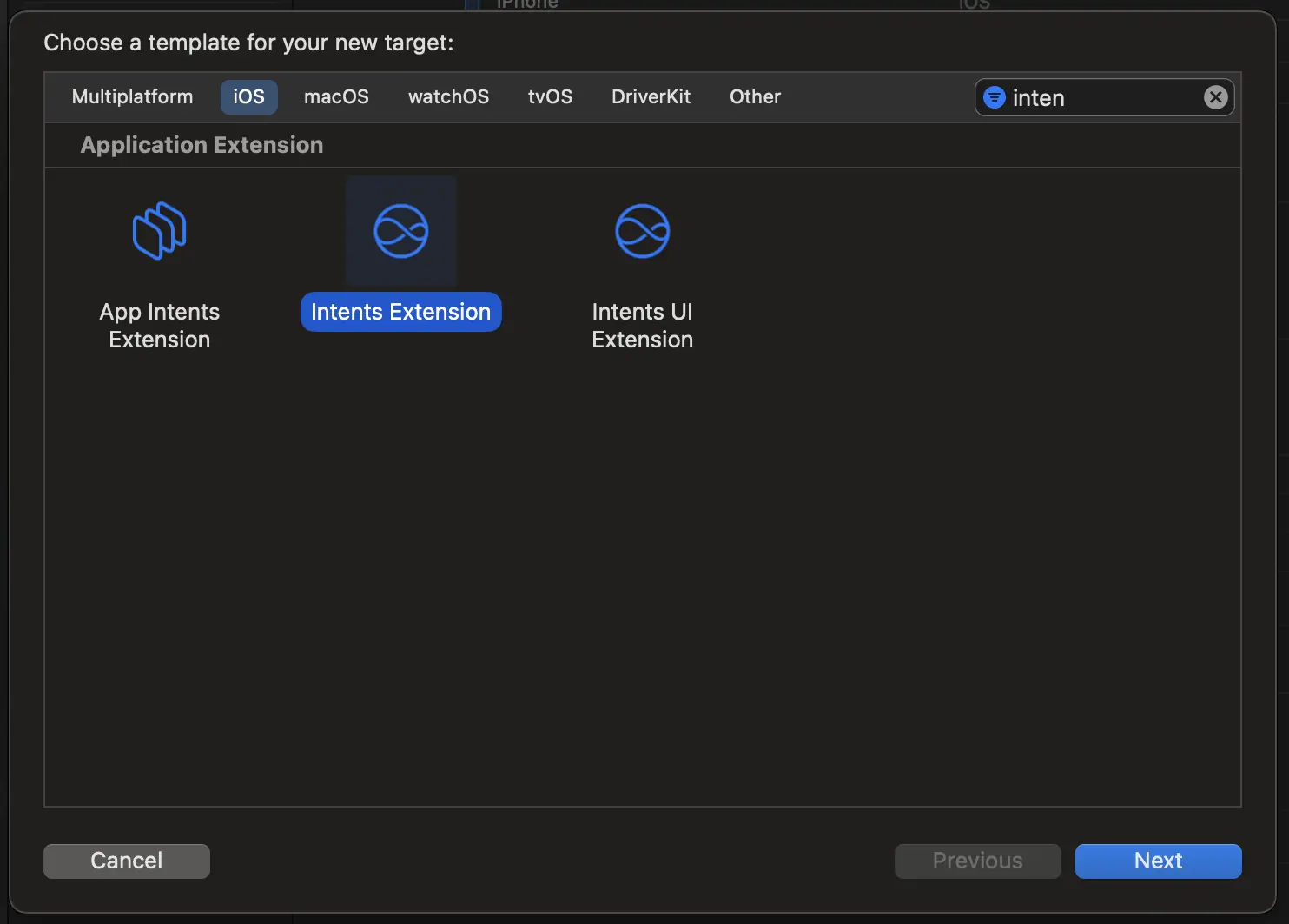 Intents Extensionto your App. Using File > New > Target > Intents Extension