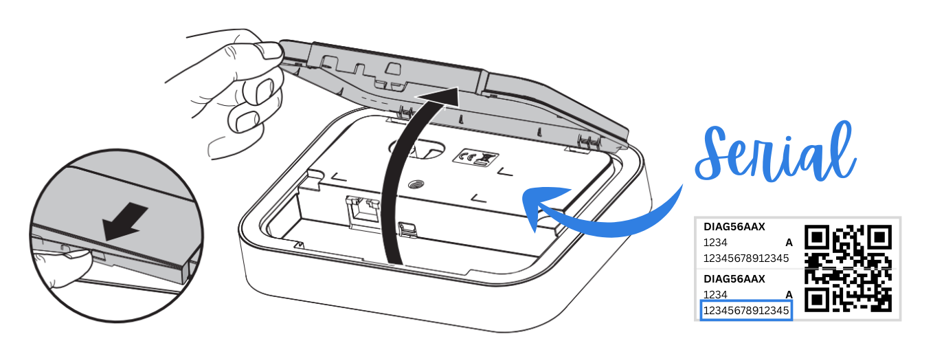 The serial number is located inside your Diagral box. To access it, open the box and locate a label with a QR code. You'll find a 14-character code - this is your box's serial number.